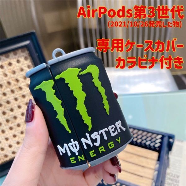 > モンスターエナジー エアポッズ第3世代専用ケースカバー 大人気 カラビナ付き 匿名配送 追跡可能