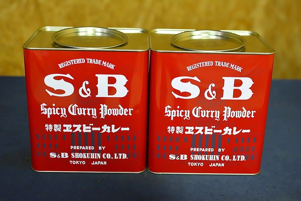 - ★業務用 S&B エスビーカレー空き赤缶 2個 2kg缶×2 業務用サイズ缶 置物やインテリアDIYなどに★