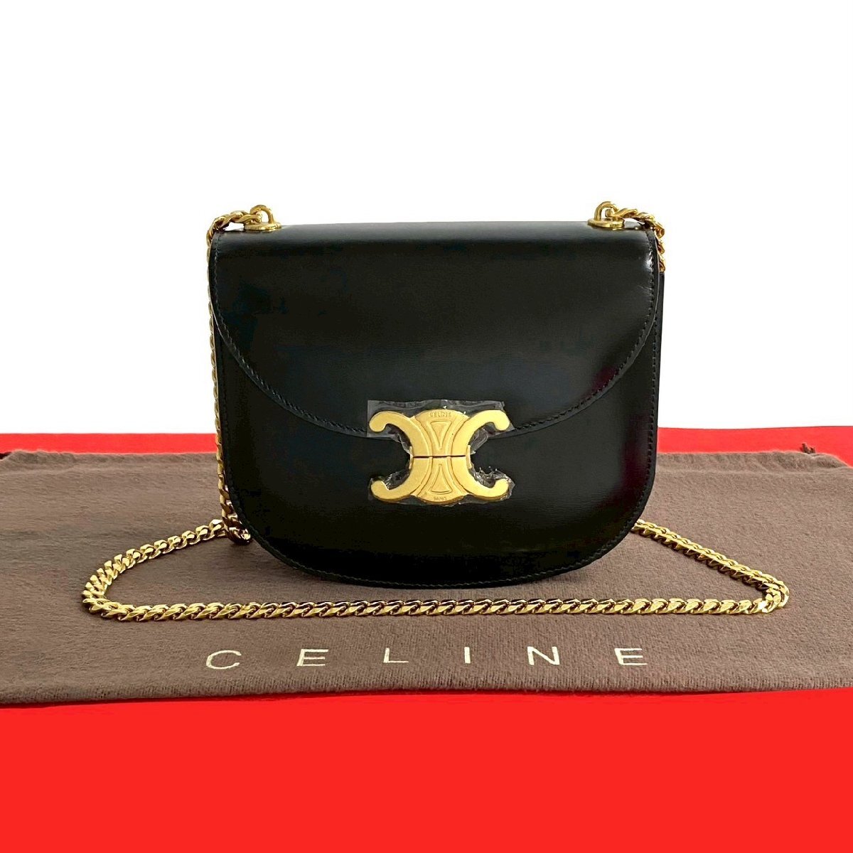 > 未使用保管品 希少品 CELINE セリーヌ ティーン チェーン ブザス レザー 本革 ミニ ショルダーバッグ ポシェット ブラック 11060