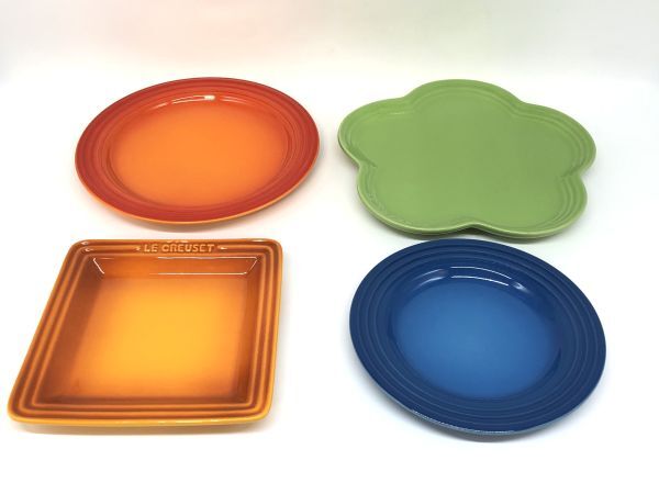 > LE CREUSET ル・クルーゼ プレート皿×4種 まとめ売り アペタイザー スクエア フラワー 洋食器