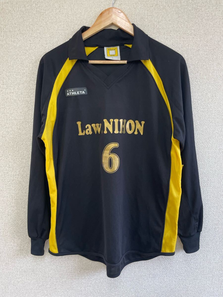 - 日本大学 日大 Law. NIHON 法学部 ATHLETA アスレタ 長袖 ユニフォーム ブラック ゴールドプリント メンズ Lサイズ サッカー