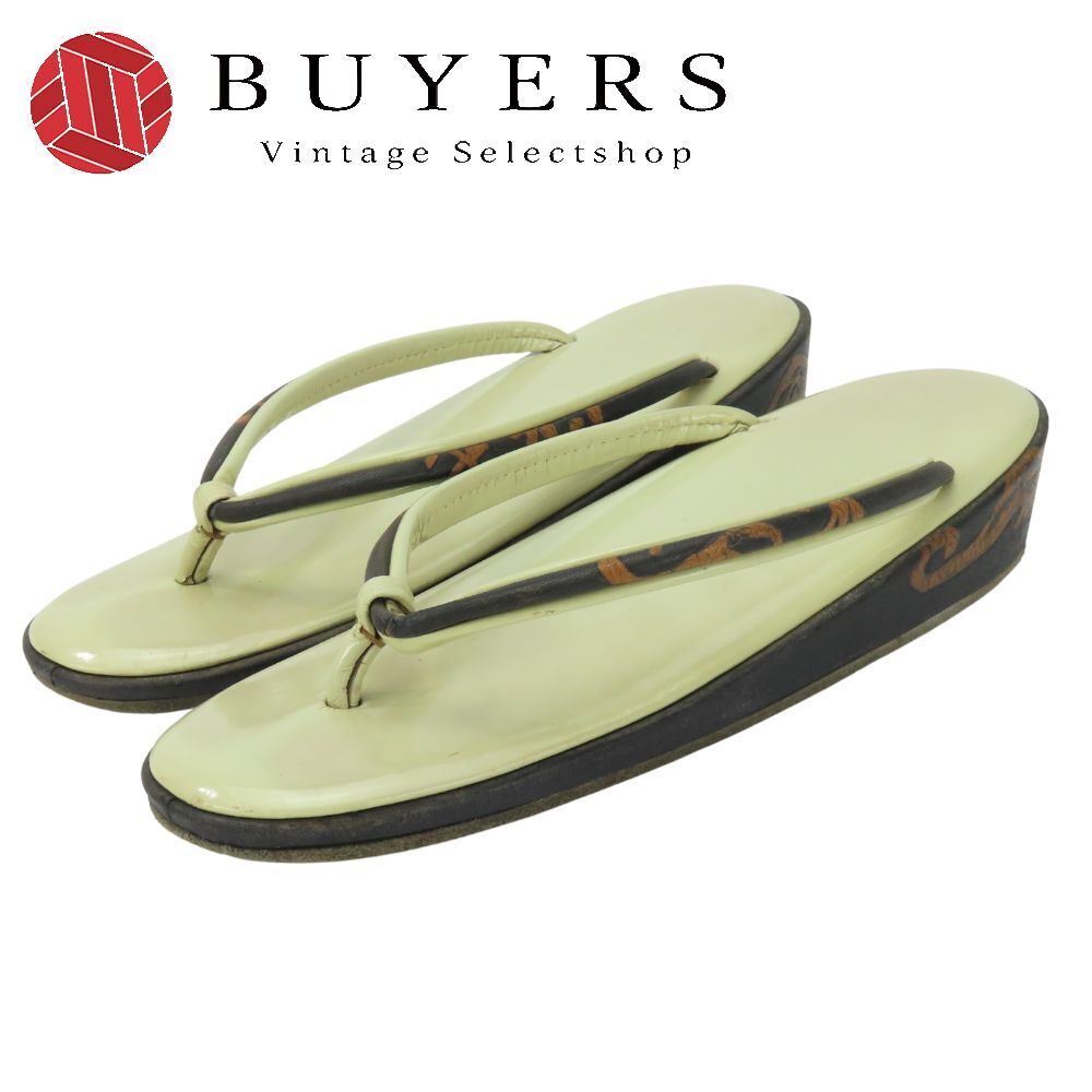 - 中古 草履 エナメル ライトカーキ ブラウン系 おしゃれ モダン 小物 和装 呉服 和服 きもの レディース 女性
