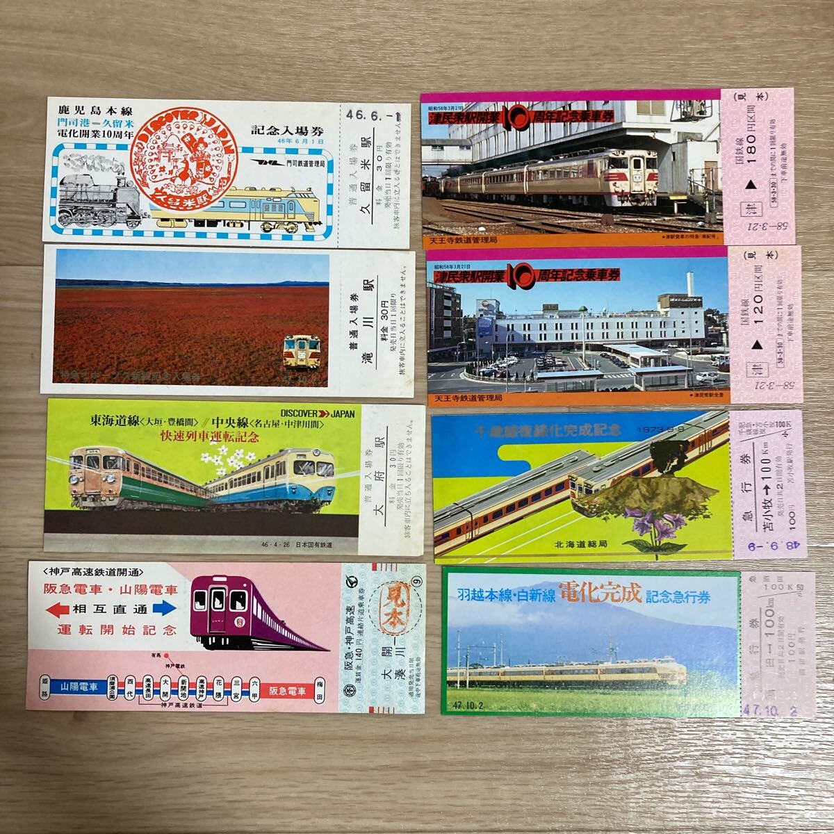 > n 5231 特急南紀号 津民衆駅開業10周年記念乗車券/東海道線快速列車記念入場券/羽越本線・白新線 電化完成記念急行券/他 8枚セット