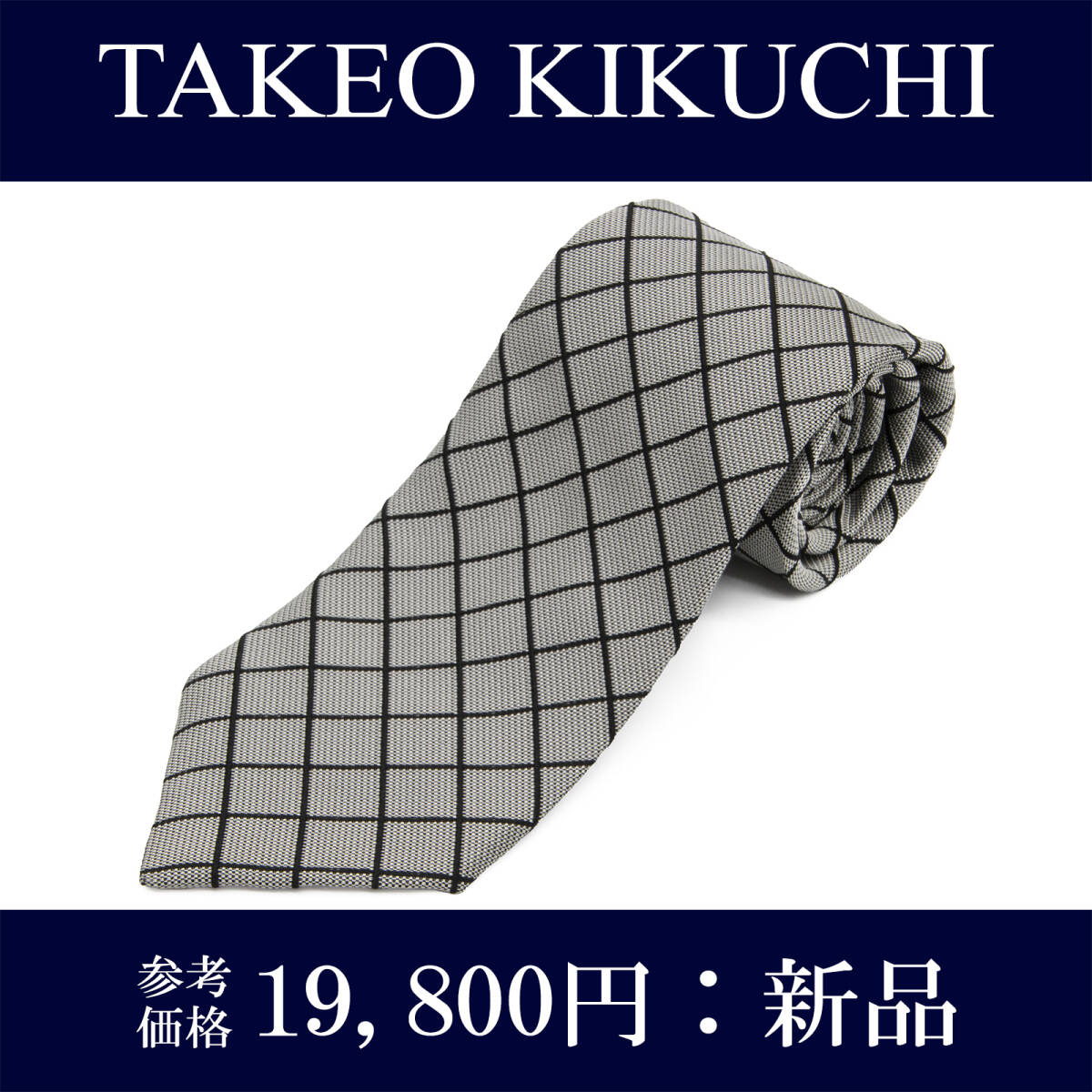 - 送料無料 タケオキクチ ネクタイ レギュラータイ ジャガード 新品 グレー 黒 ビジネス カジュアル 格子 チェック 人気 ブランド 綺麗 N993