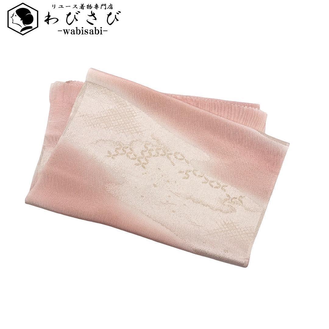 乙女色のお色味に霞模様、七宝繋ぎの柄裄がデザインされた素敵なお品でございます。