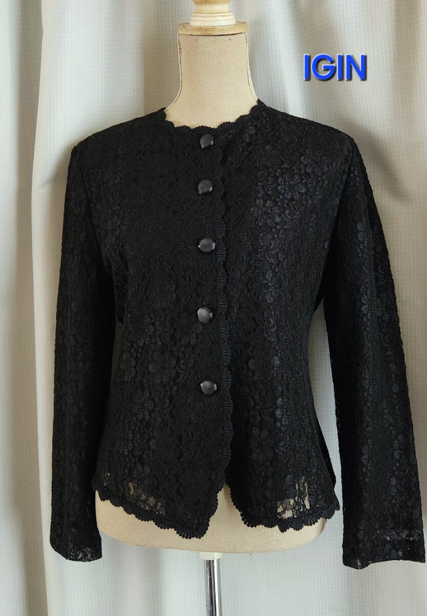 - 大変美品 IGIN ブラックフォーマル レースのノーカラージャケット