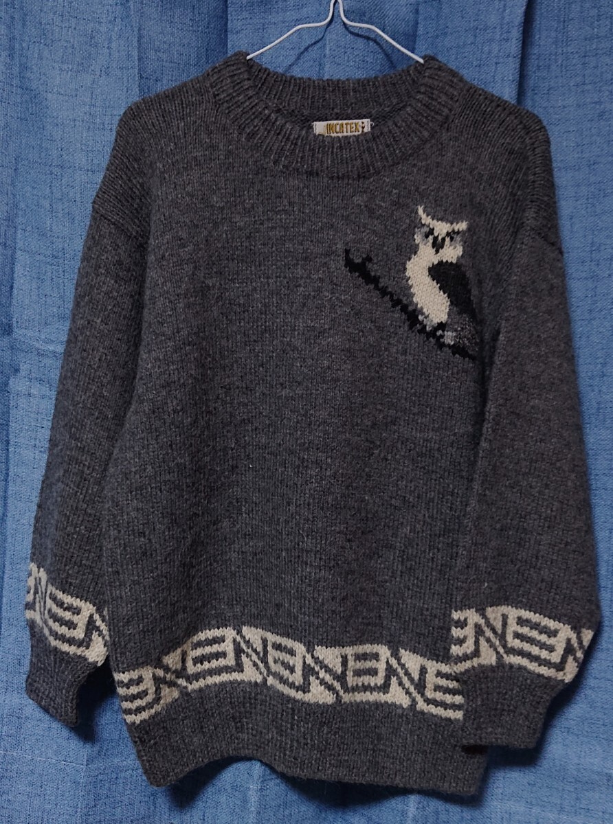 - INCA-TEX インカテックス アルパカ 100% レトロ ニット クルーネック セーター ペルー製 アンティーク グレー