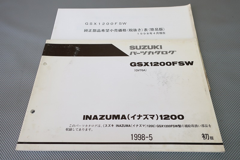 - 即決!イナズマ1200/1版/パーツリスト/価格表付!GSX1200FSW/GV76A/inazuma/パーツカタログ/カスタム・レストア・メンテナンス/52