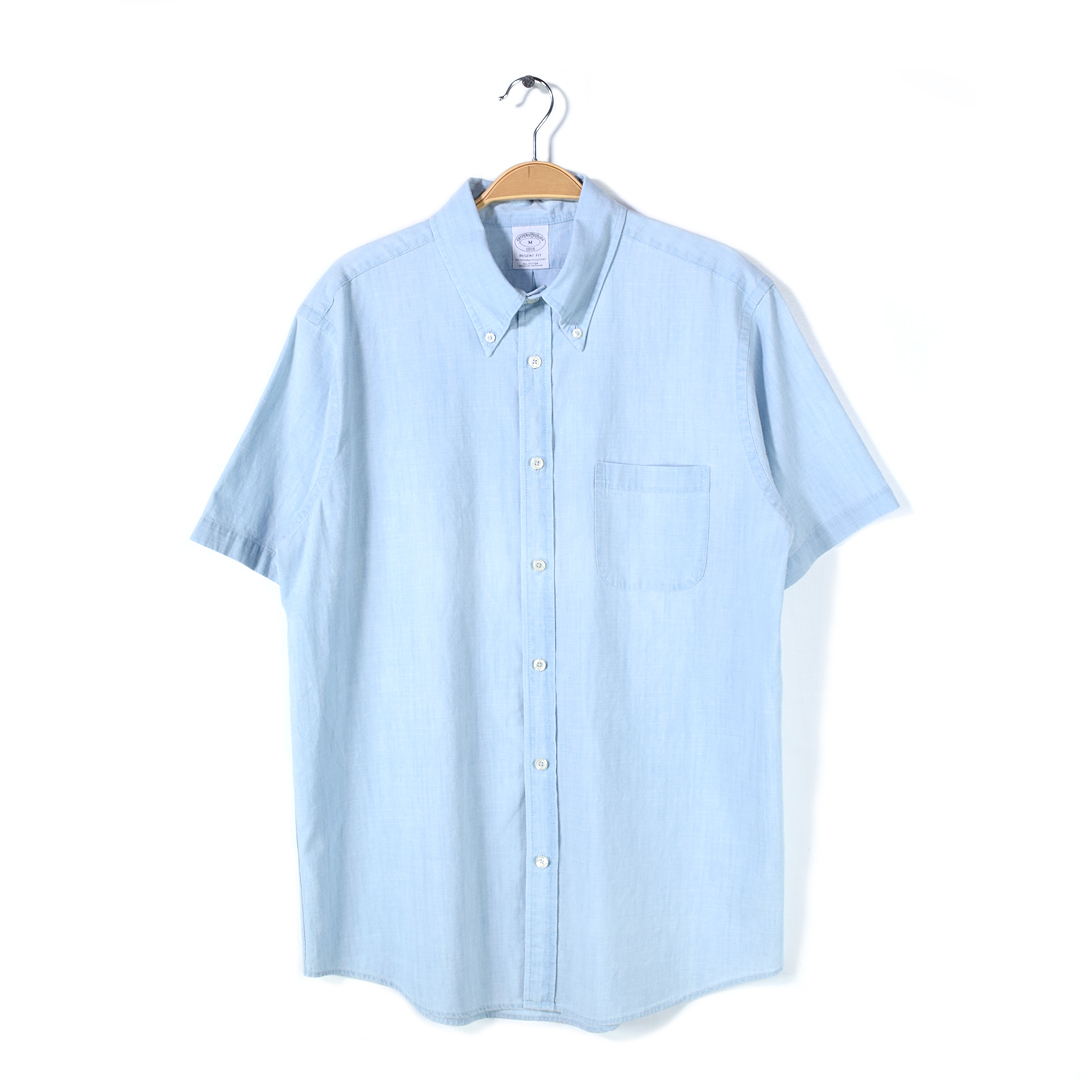 > 【送料無料】ブルックスブラザーズ ボタンダウン シャンブレーシャツ ライトブルー 半袖シャツ BROOKS BROTHERS メンズM 古着 @CB1312