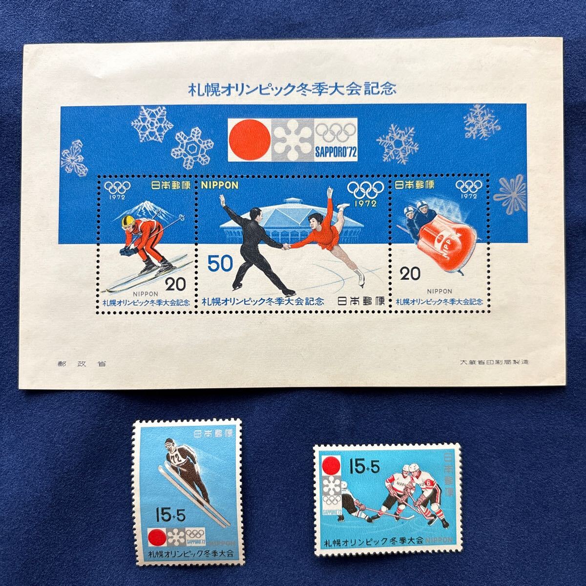 > 記念切手【札幌オリンピック冬季大会記念】未使用 小型シート1枚+切取2枚 1972年 スキー アイスホッケー 昭和レトロ 日本 送料無料