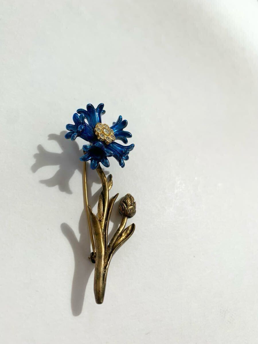 > 【USED】希少 英国購入 MMA(Metropolitan Museum of Art) & VMFA ブルーエナメル お花 ブローチ メトロポリタンミュージアム ペンダント