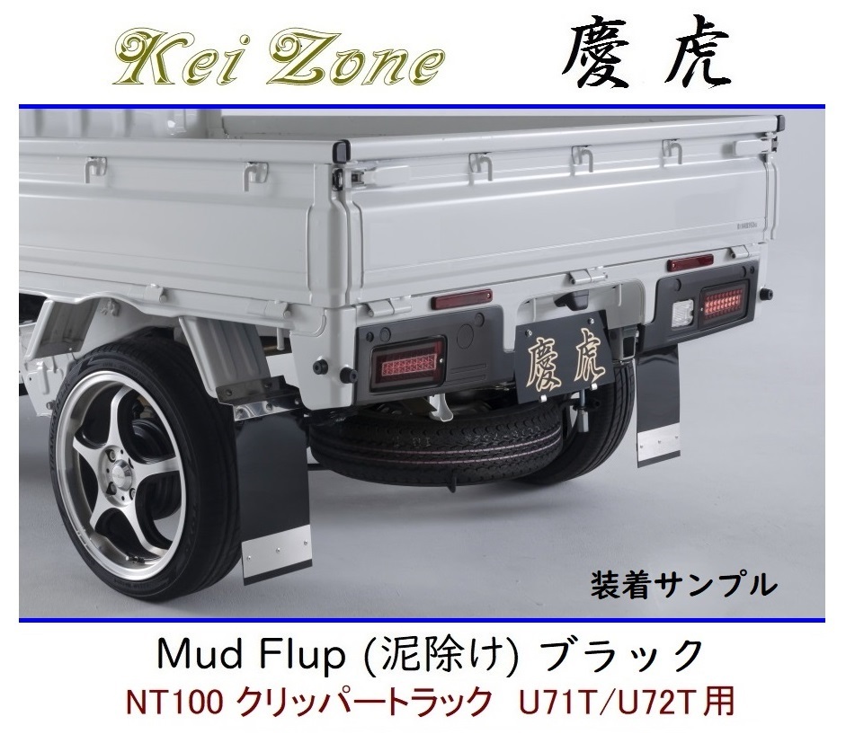 > ◆Kei Zone 慶虎 Mud Flap 泥除け 鏡面ステー付【ブラック】軽トラ用 NT100クリッパートラック U71T