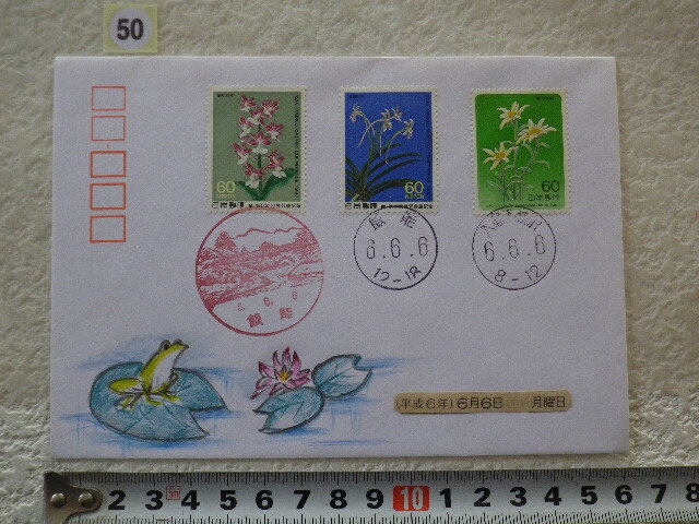 - 日並び消印 666 3貼3消 飯能印 色鉛筆の肉筆カシェ②●50●同梱大歓迎