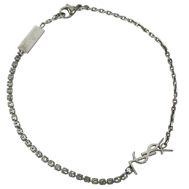 > SAINT LAURENT サンローラン 712345 ブレスレット バングル アクセサリー 小物 YSLロゴ ラインストーン メタル シルバー