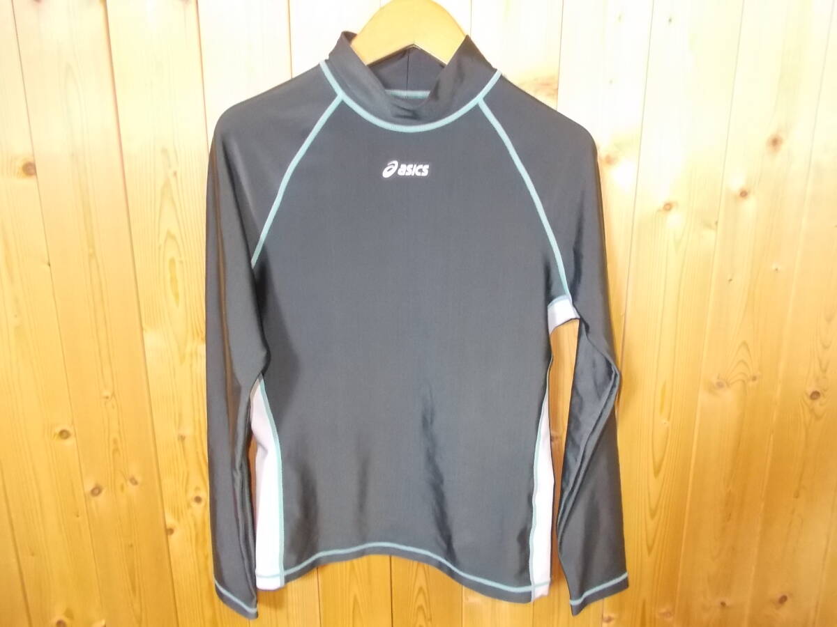 - b1359◆asics 長袖 アンダーシャツ◆レディースL ALT616 グレー色 アシックス モックネック 長袖Tシャツ ゆうパケット発送 7E
