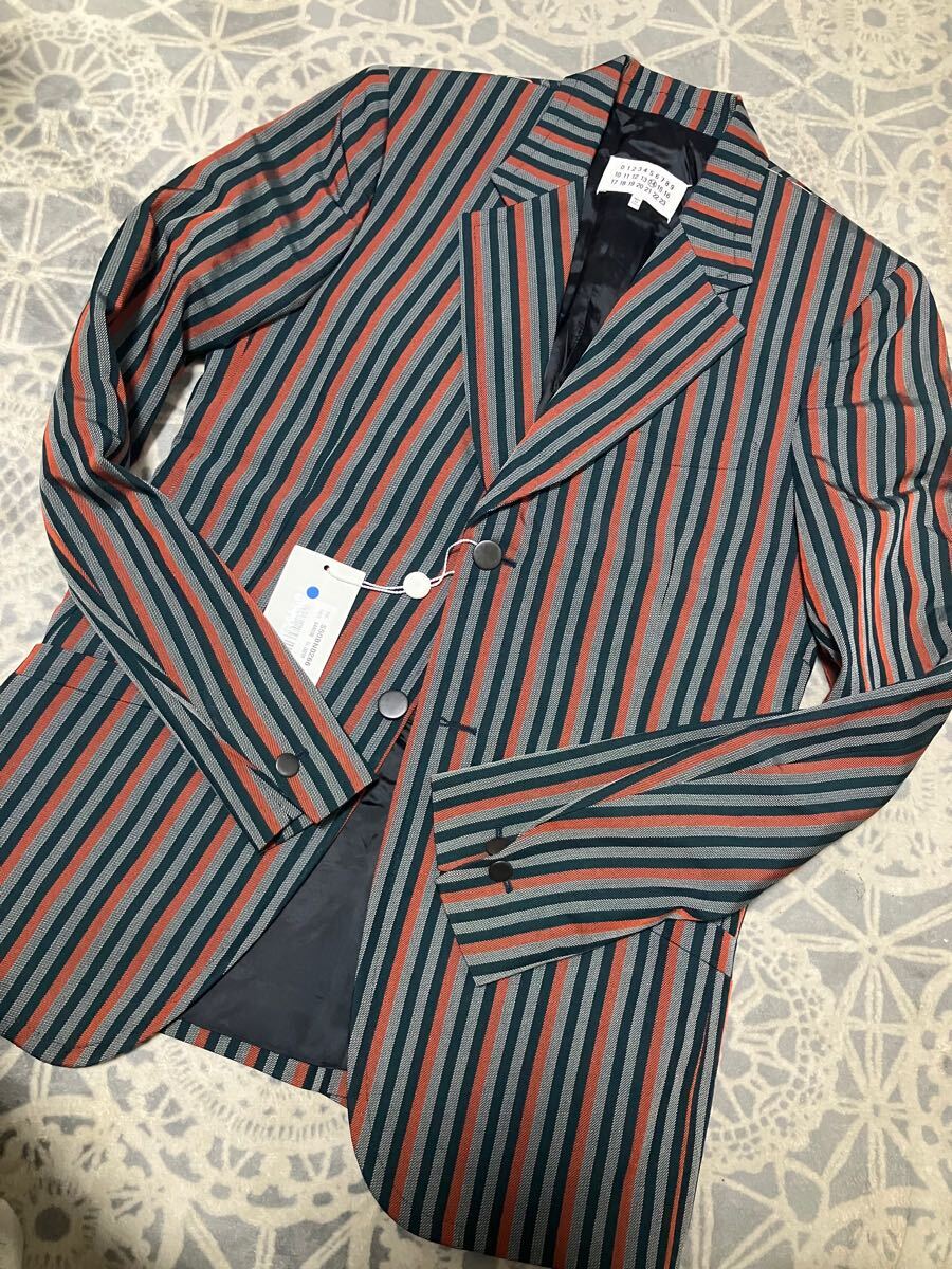 > メゾンマルジェラ グリーン ストライプ テーラードジャケット