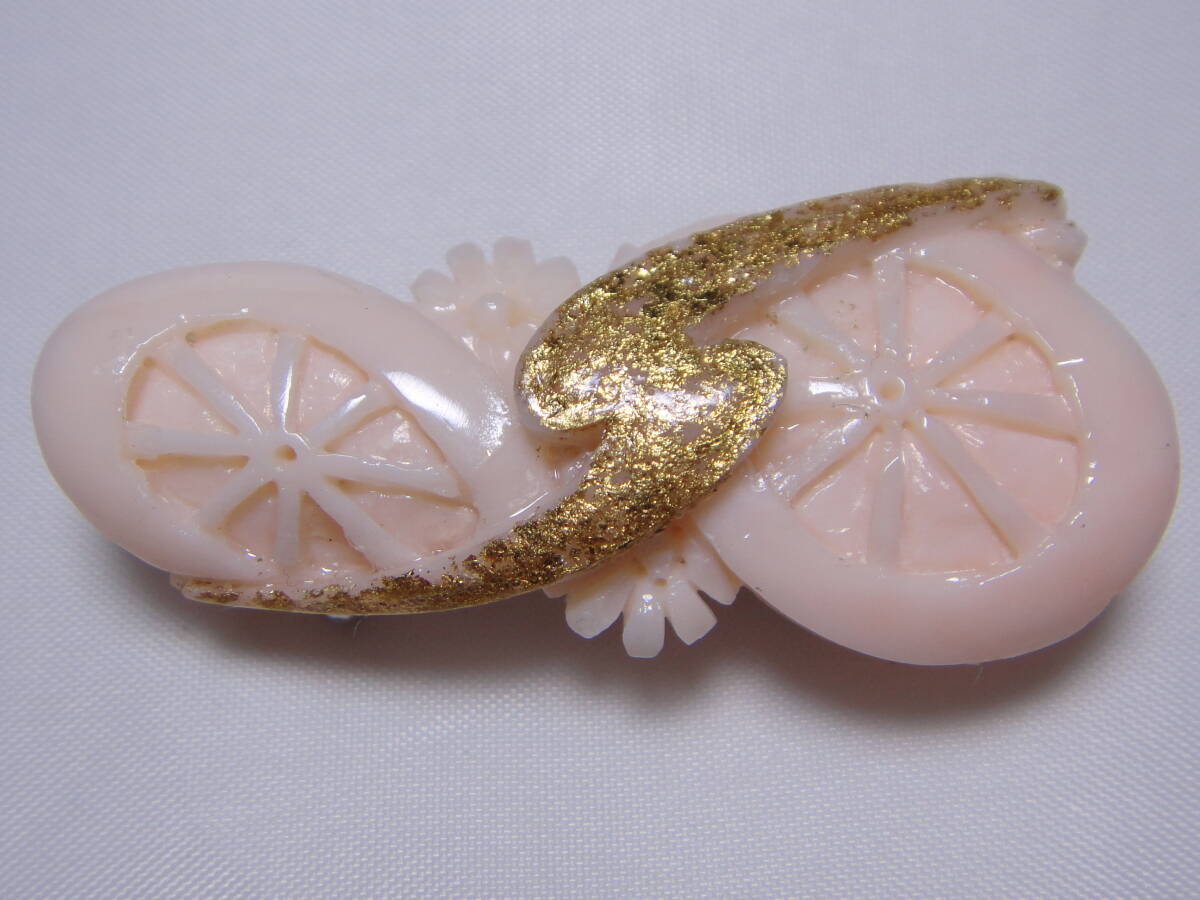 - 本珊瑚 サンゴ さんご コーラル 帯留め 彫刻 金箔付き レトロ アンティーク ヴィンテージ Y675