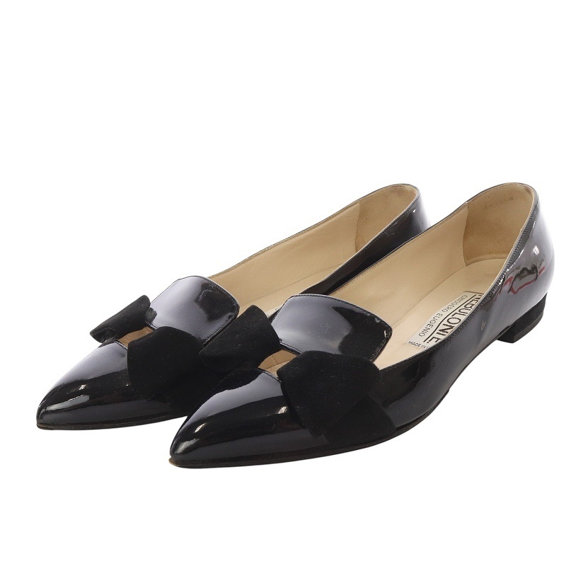 > ネブローニ Nebuloni パンプス フラット ポインテッドトゥ リボンモチーフ パテントレザー スエード 36 ブラック /YO8 レディース