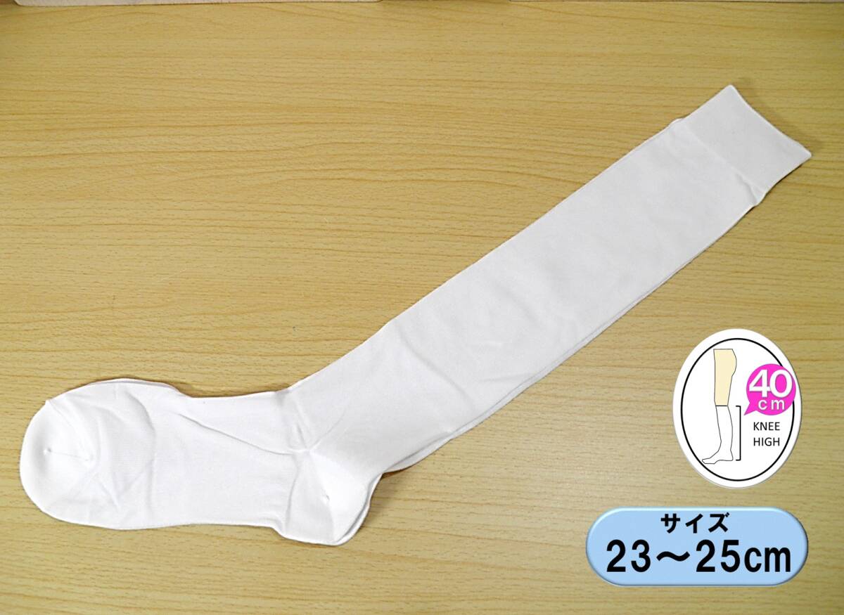 - 【レッグウェア★未使用品】平編み◆白 ハイソックス◆ナイハイ◆スクールソックス◆コスプレ◆23-25cm◆40cm丈◆