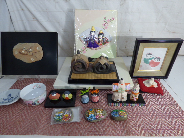 - ま857.雛飾り 雛人形 置物 壁掛け 色紙 京陶人形 陶人形 お雛様 小鉢