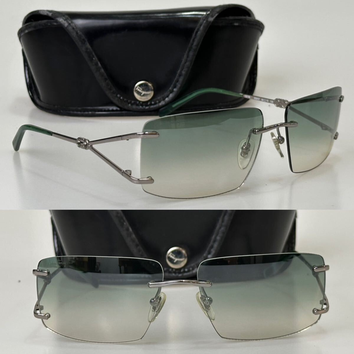 - 美品!!イタリア Salvatore Ferragamo 1071B 503/57 60□15 ガンチーニ ラインストーン グラデーショングリーン リムレス サングラス