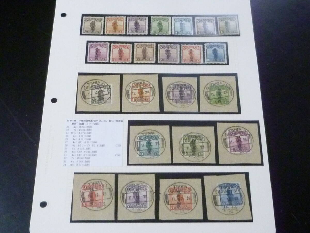 > 鉄道№21 旧中国切手 新疆省 1924-36年 北京新版帆船 計13種(未使用LH~OH)+11種(TIHWA 初日印付) VF ※説明欄必読