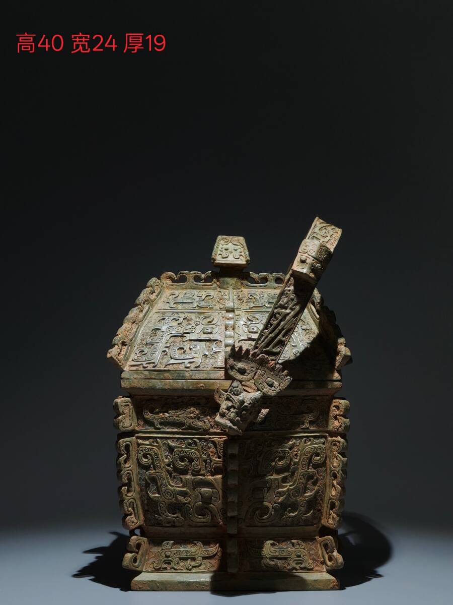 - 【超珍館蔵】商 青銅製 獣面紋方形提梁 青銅器 置物 賞物 古賞物 古董品 古美術品 時代物 旧家蔵出 稀少珍蔵品