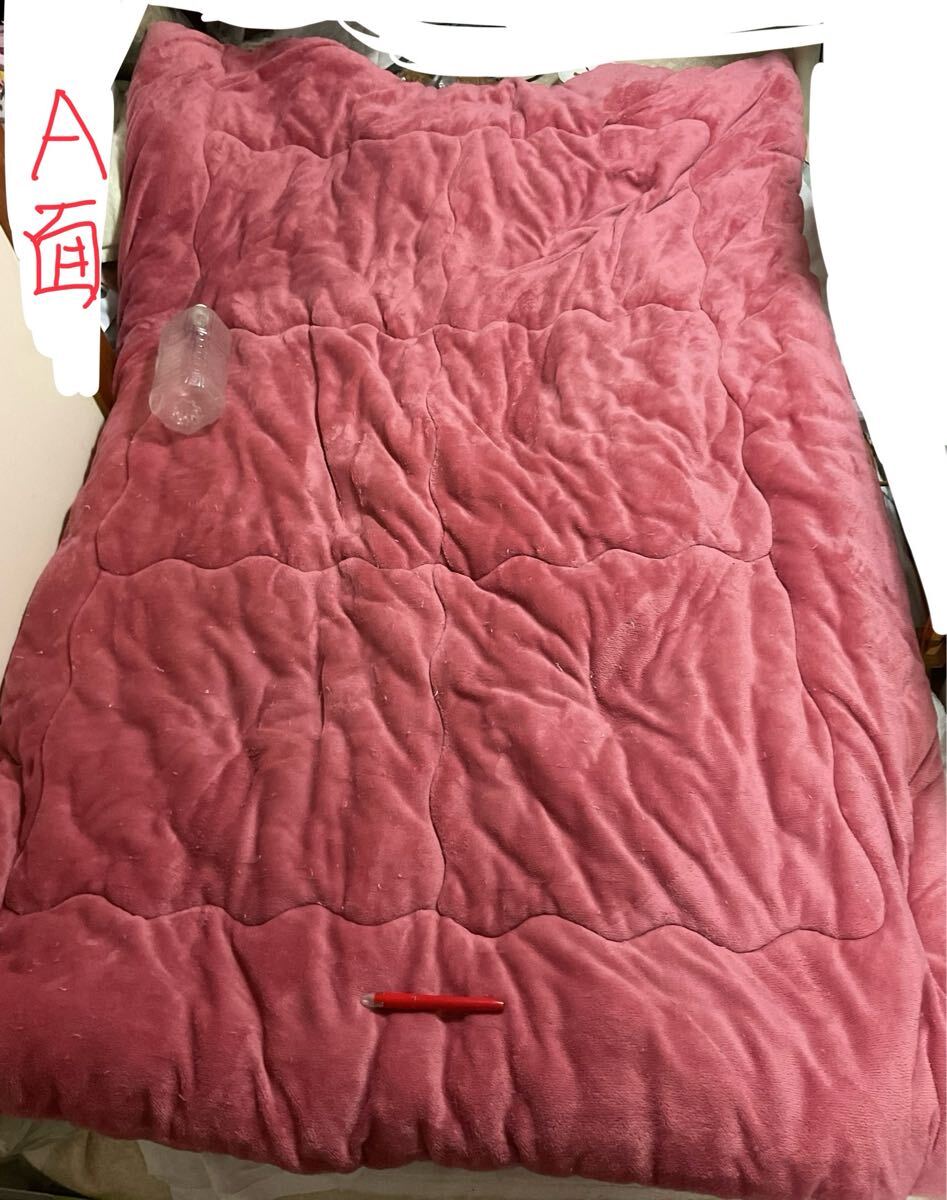 - 毛布掛布団 掛布団 シングル 実測幅147長さ218厚さ約4cm ポリエステル100% 500円超複数10%商品オマケ 桃色 糸飛び出し多数 100