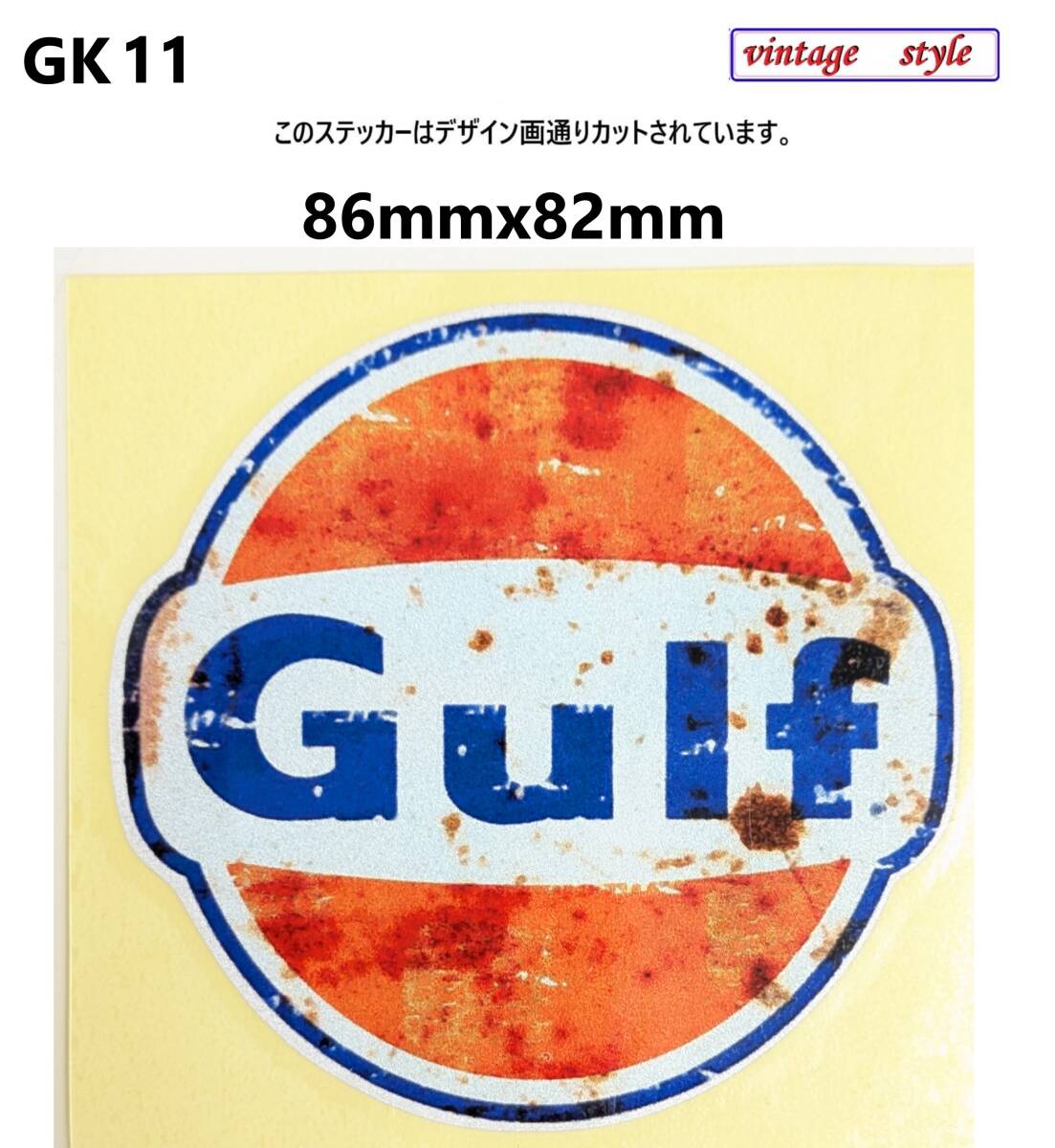 > 送料無料 GK11-01 キラキラ ヴィンテージスタイル GULF オイルステッカー ガソリンステッカー ダメージ加工 レトロ ガレージ デカール