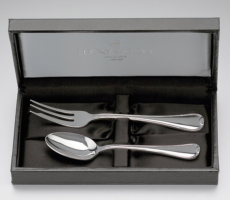 - ★ラッキーウッドロムネー洋白銀器シルバープレートティースプーン&ケーキフォークセット20ミクロン銀仕上ミラー仕上日本製新品