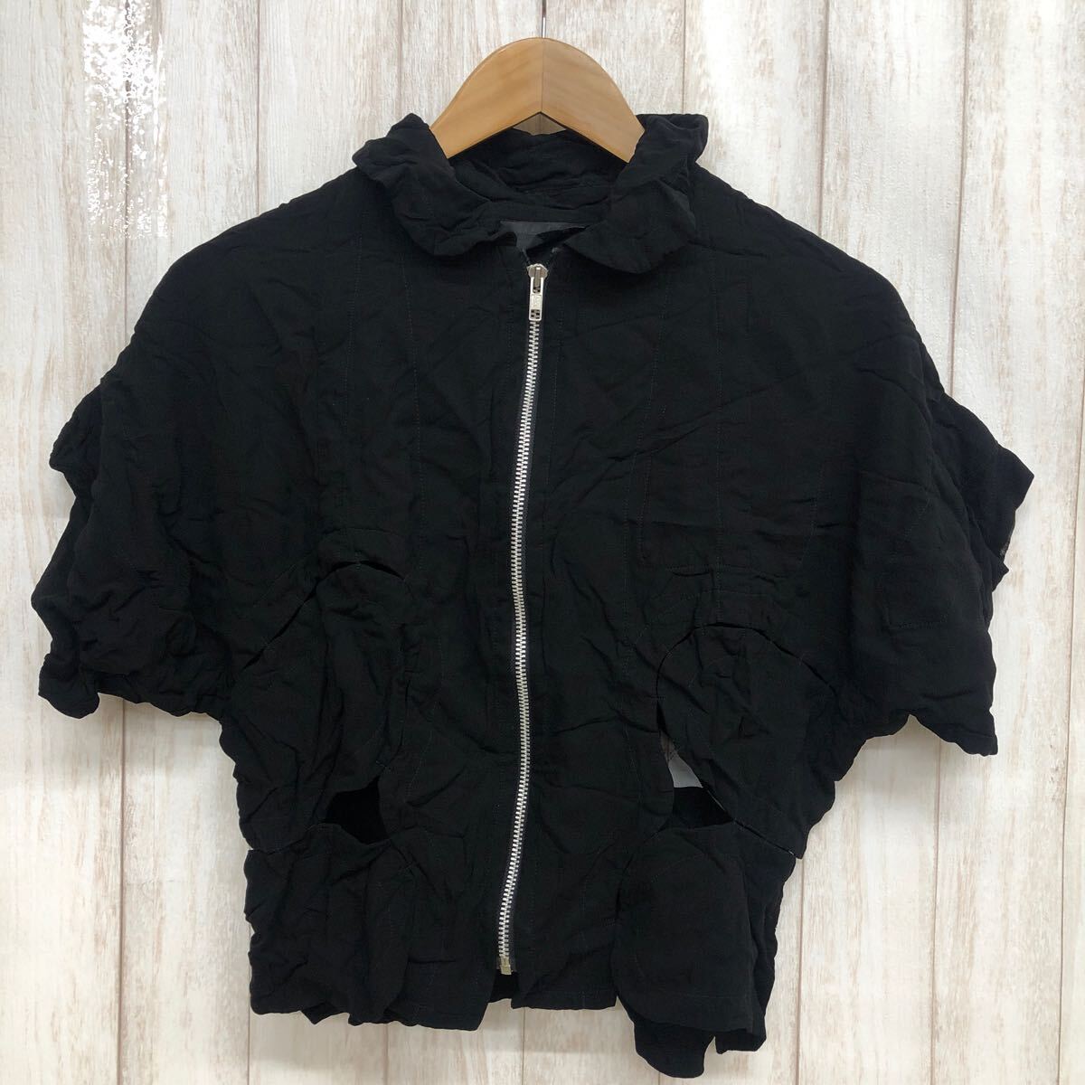 - COMME des GARCONS コムデギャルソン ジップアップブルゾン 半袖 GO-J090 黒 レディース YF307