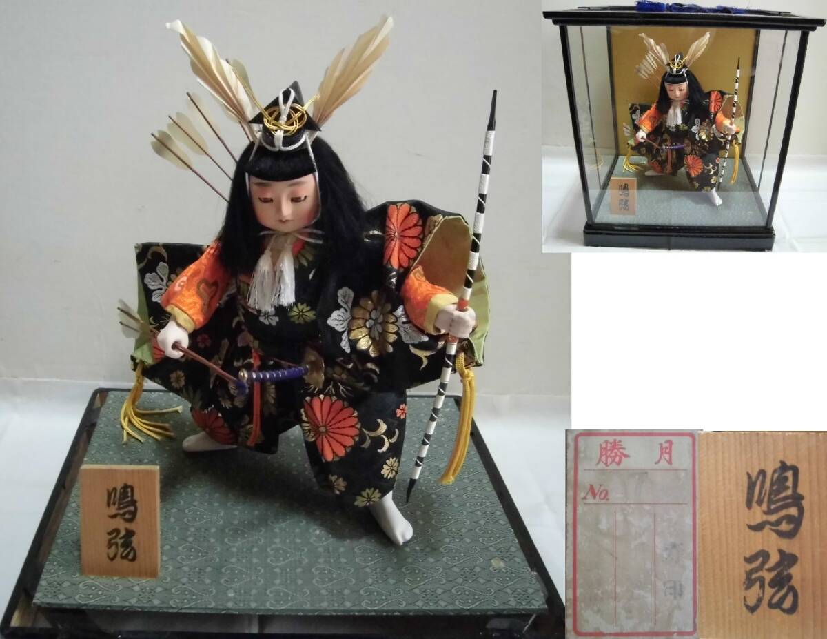 - 古い 五月人形 鳴弦 勝月 寿印 木製 ガラスケース入り 節句 子供の日 日本人形 置物 飾り物 レトロ
