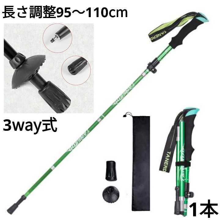 - 残りわずか 新品 アルミ製 収納袋付き 3way 登山 補助 ウォーキング 軽量 トレッキングポール 長さ調整可 緑 即購入OK 【※値下げ不可】
