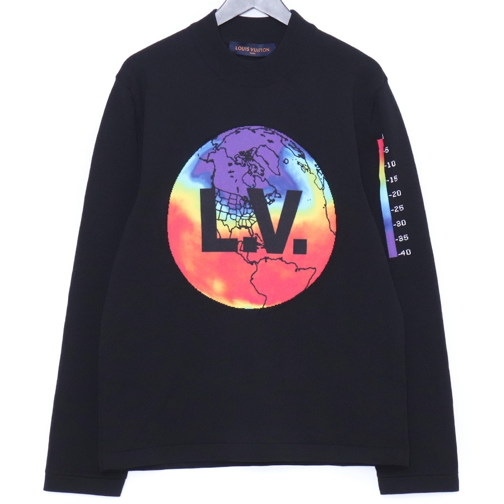 - LOUIS VUITTON アース LVロゴ クルーネック ニット セーター Lサイズ ブラック RM201G RLB HIN41W ルイヴィトン プルオーバー トップス