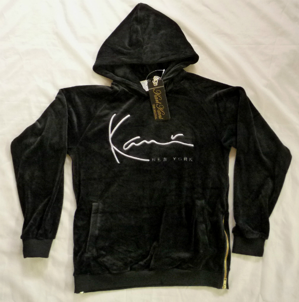 - KARL KANI カール・カナイ 長袖パーカー ベロア生地 Mサイズ 黒 ブラック -新品-