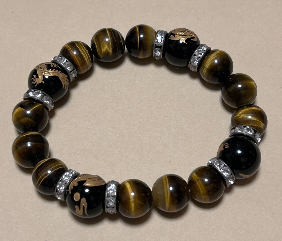 - 天然石 パワーストーン ブレスレットタイガーアイ (ゴールド) 幸運 開運 メンズ 男性♪