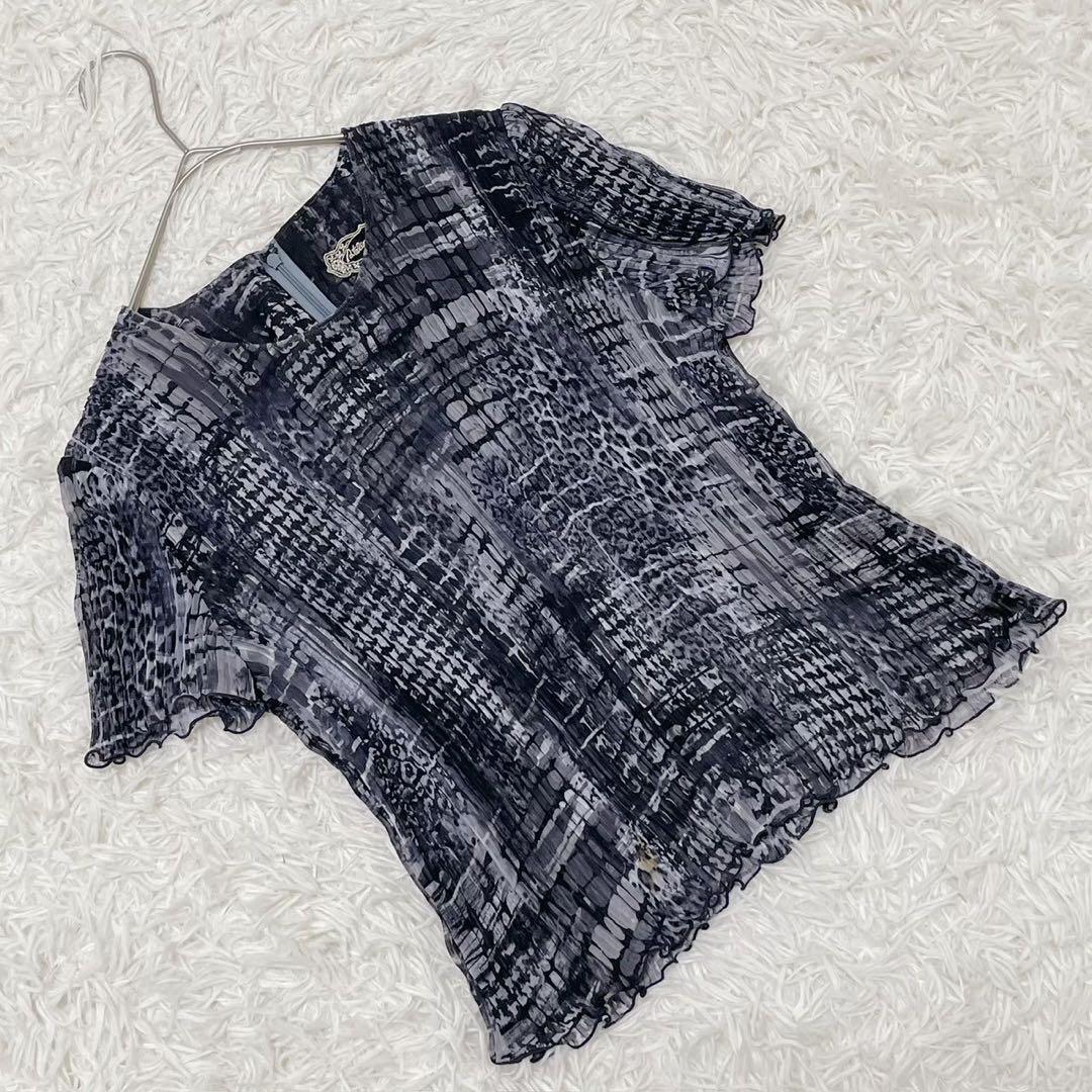 - 『アトリエアイ』 (9R) 総柄プルオーバーブラウス 半袖 アニマル 日本製
