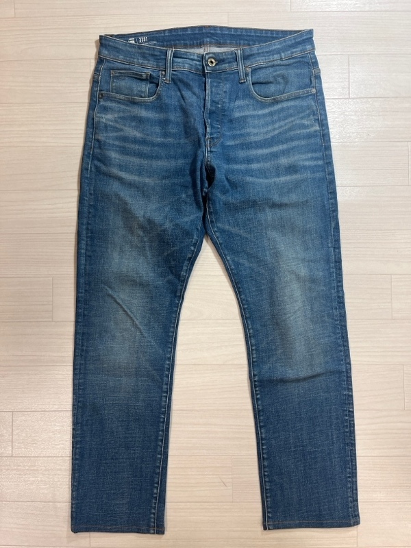 > G-STAR RAW/ジースターロゥ/3301 STRAIGHT TAPERED JEANS/3301 ストレート テーパードジーンズ/ストレッチ/32×36/ダメージ加工