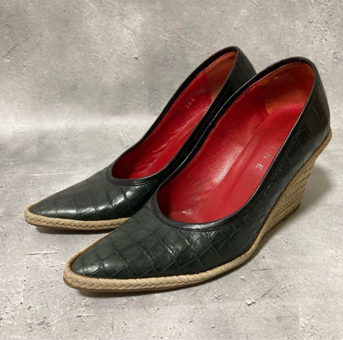 - セリーヌ CELINE ポインテッドトゥパンプス 型押し エスパド 36.5 ウェッジソール ハイヒール 本革 夏 シューズ