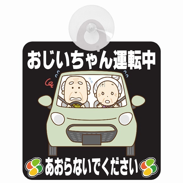 - セーフティサイン おじいちゃん運転中 あおらないで ブラック イラスト かわいい 高齢者マーク シルバーマーク 安全運転 吸盤 送料無料