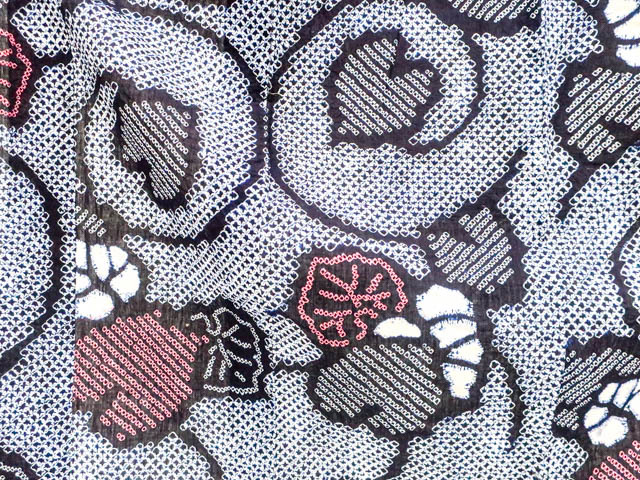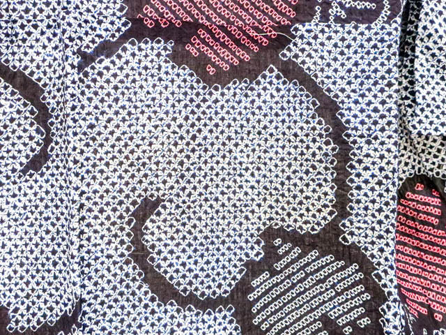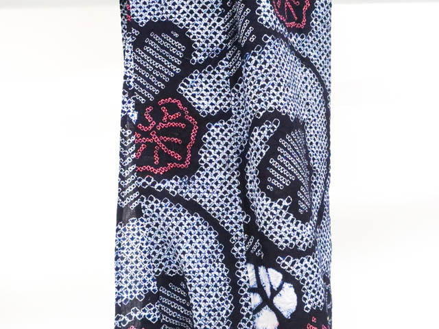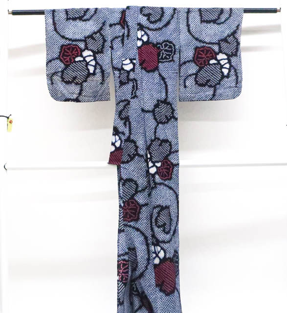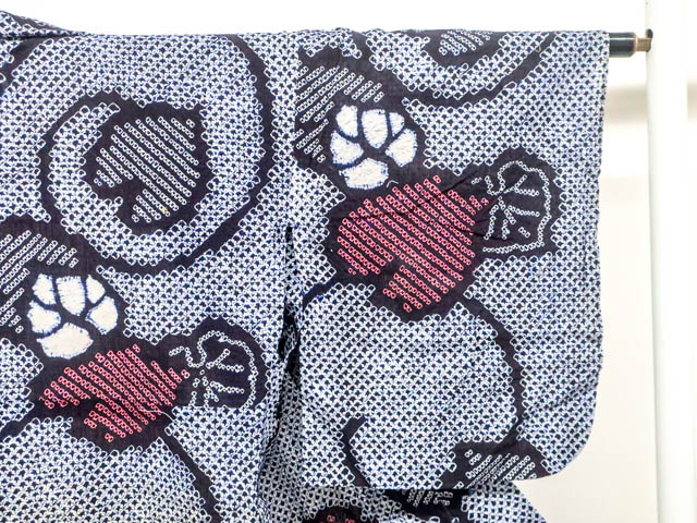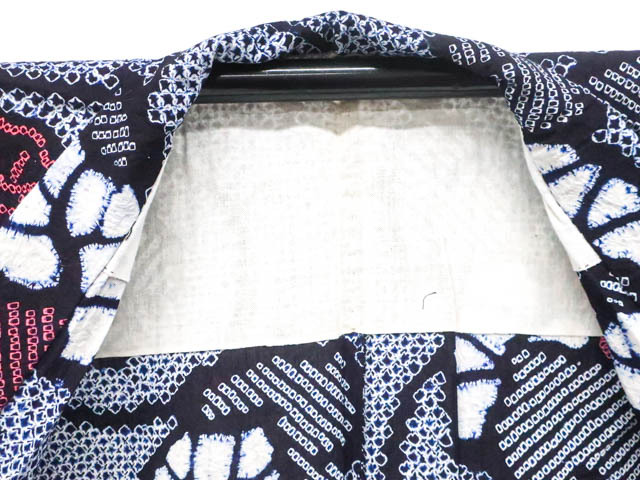 - 《京都一輝堂》【着物】浴衣 有松鳴海絞り 昭和レトロ 植物柄 身丈約156.5cm 裄丈約62cm r7z05-457