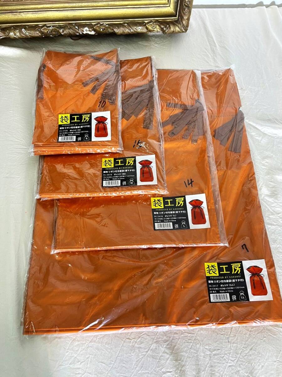 - M3083【S30枚/M35枚/L14枚/LL27枚★全部で106枚】梨地 リボン付巾着袋 ラッピング袋 オレンジ
