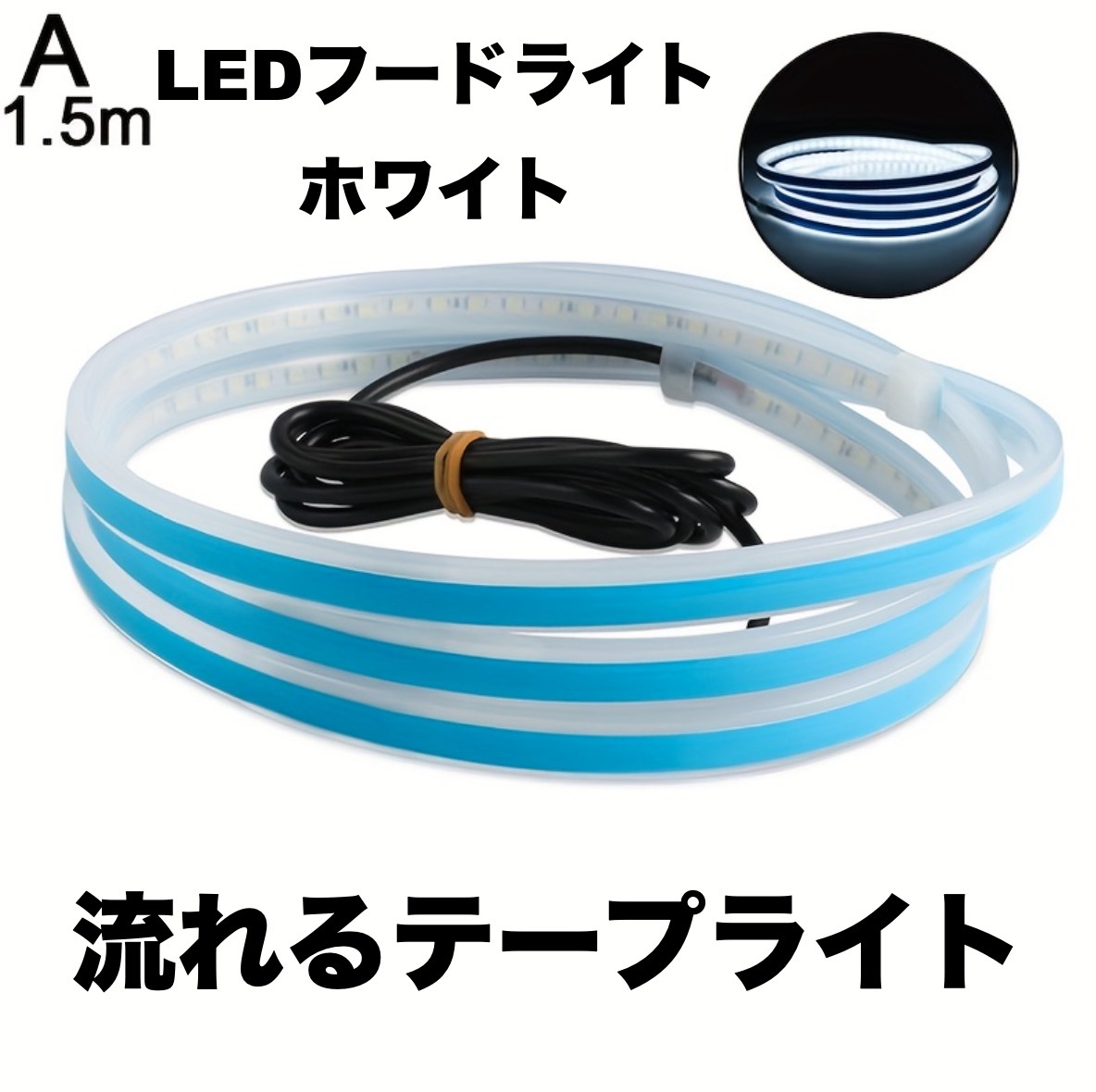 > LEDフードライト 車用 テープライト ホワイト 150cm 防水 流れるライト 明るい 側面発光 両面テープ トラック 極薄型 シリコン 汎用 t2794