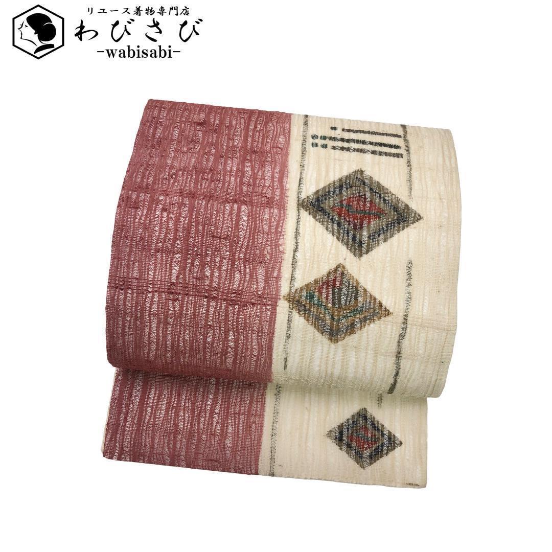 - 夏帯 名古屋帯 夏すくい 抽象模様 東京白茶色 O-5115 着物 きもの kimono 和服 和装 中古 リサイクル着物 【送料無料】