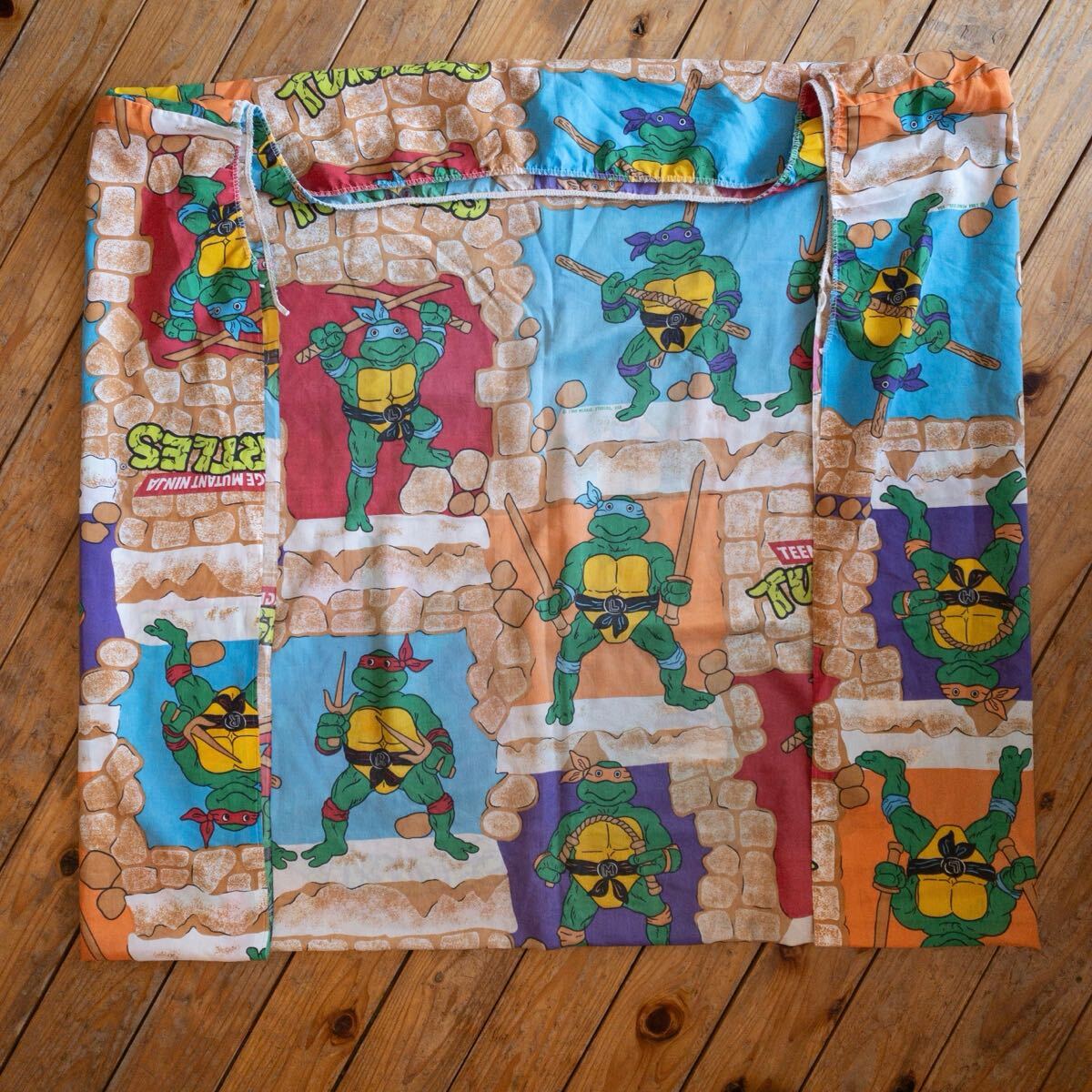 > USAヴィンテージ ベッドシーツ ミュータントニンジャタートルズ リメイク生地 アメコミ 素材 ボックスシーツ アメリカ仕入 B2730