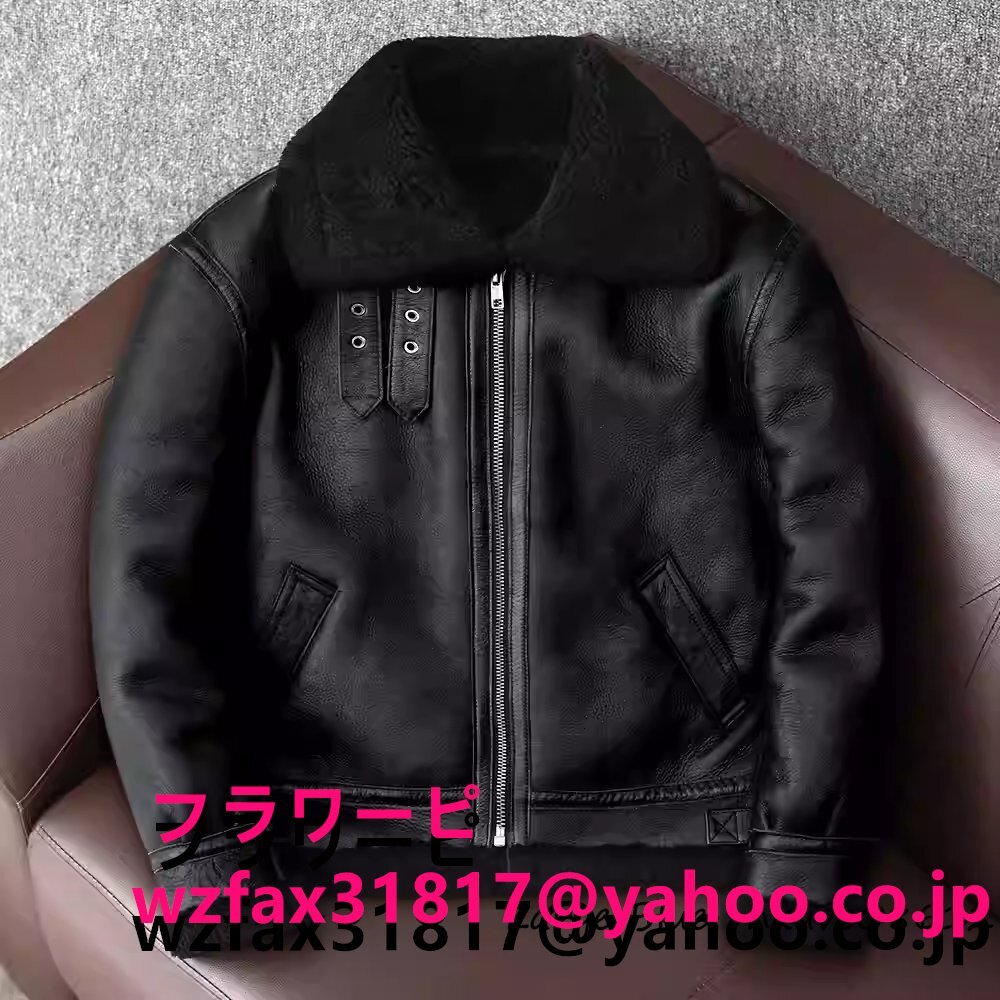 - 秋冬の最新モデル羊革 フライトジャケット B-3 ムートンコート 毛皮一体 シープスキン カウハイド 本革 レザージャケット コート ブルゾン