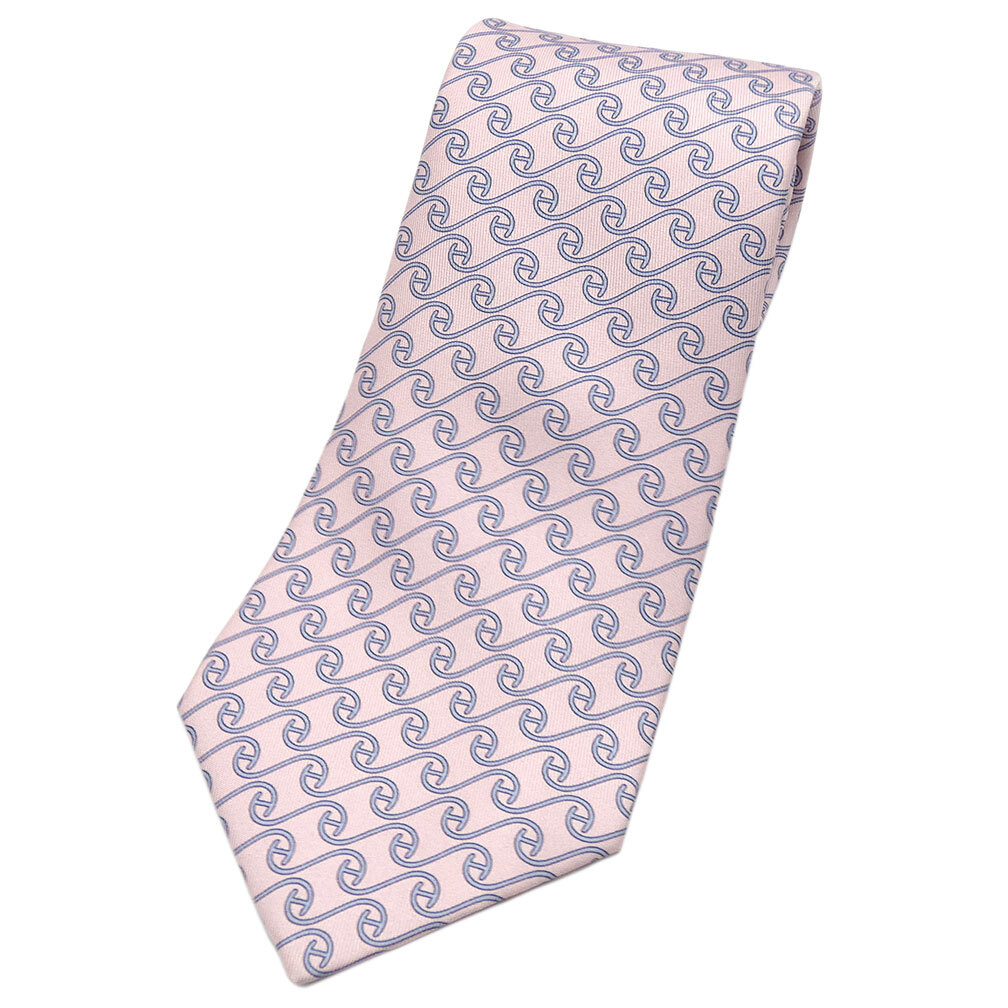 - 極美品 エルメス ブランド ネクタイ HERMES シルク 100% ワイドタイ プリント H柄 ピンク ブルー 5244SA OJ10494