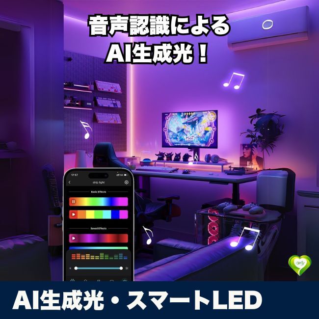 > 【AI生成光・スマートLED】LEDテープライト 5m AI照明デザイン 音楽同期 RGBカラー 追いかける光色 DIY 間接照明 人気 おすすめ