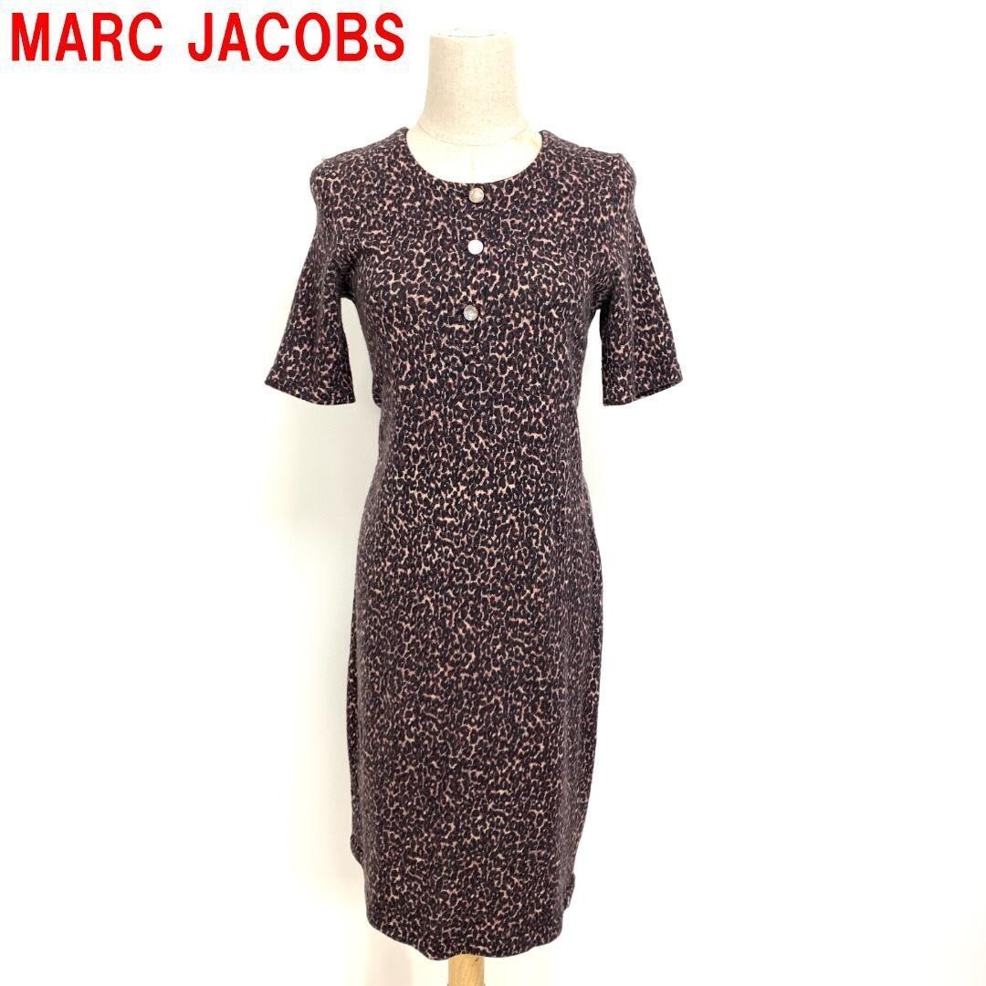- A5884 マークジェイコブス 半袖ワンピース ウール MARC JACOBS ブラウン ニット ロングヒョウ柄 茶色 M