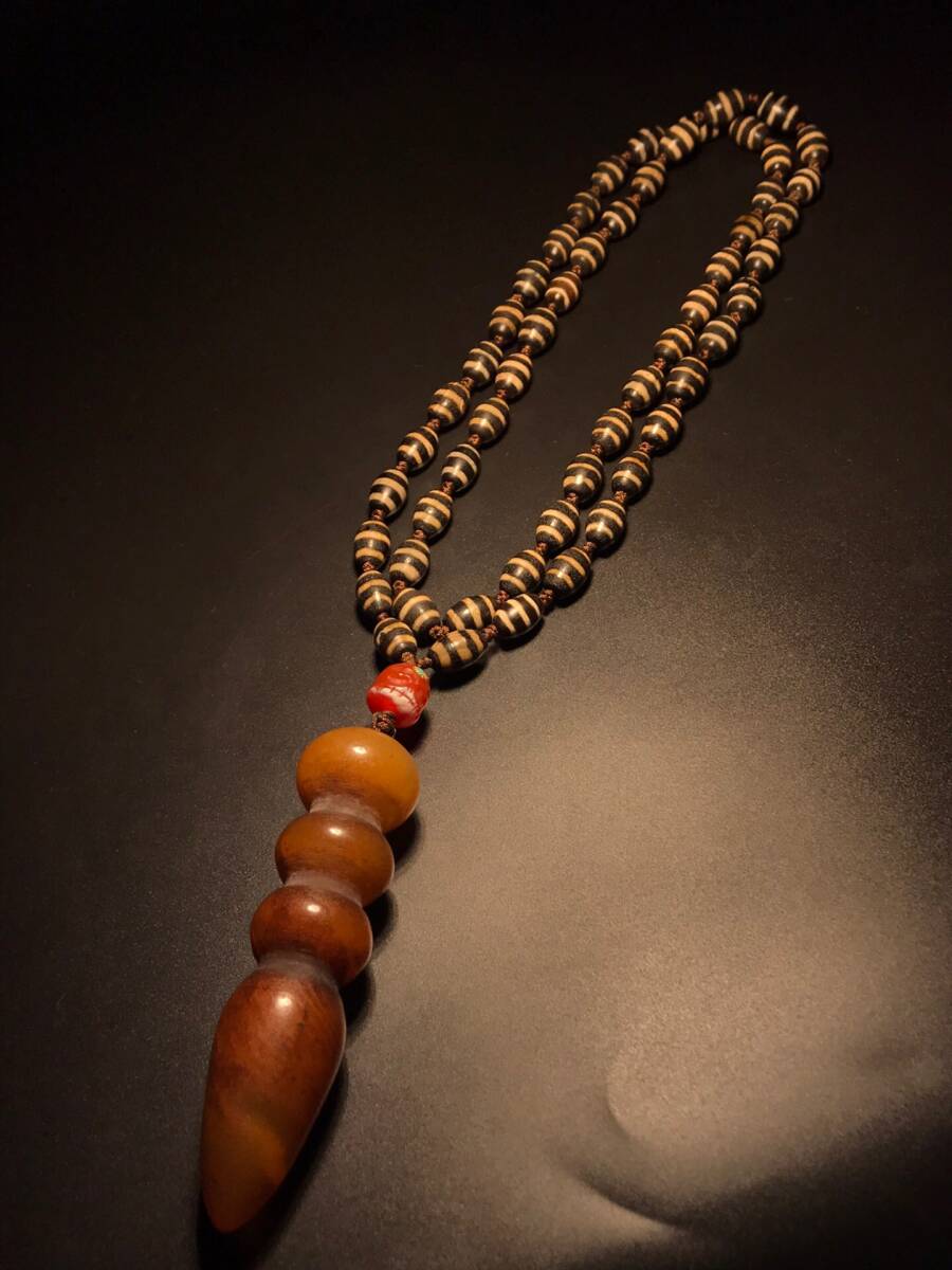 - 蔵友旧蔵出 瑪瑙製 細密彫 龍紋線珠配金剛杵天珠ネックレス本 根付裝身具 希少珍品 賞物 中国時代美術品